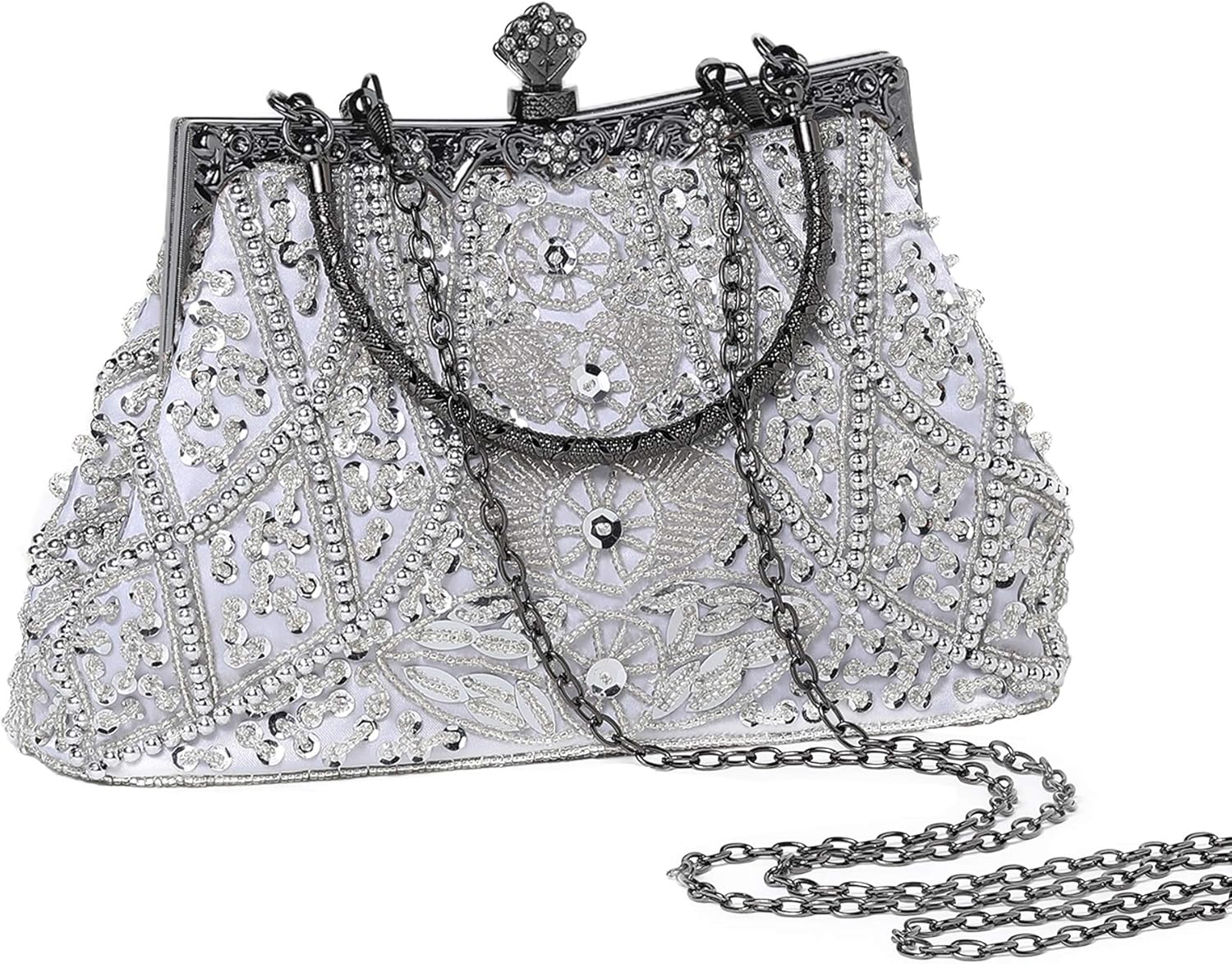 Coucoland Vintage Pearl Bag 1920s Flapper Clutch Handbag Glitter Sequin Clutch Bag For Women Roaring 20s Evening Clutch Beaded Bag Gatsby Costume Accessories Wedding Party White Amazon Co Uk Shoes Bags